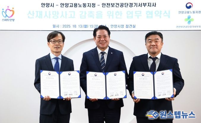 원스텝뉴스 이병희 기자 | 안양시가 13일 고용노동부 안양지청, 안전보건공단 경기서부지사와 산재사망사고 감축을 위한 업무협약을 체결했다.