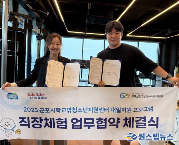 원스텝뉴스 이병희 기자 | 군포시청소년재단(대표이사 김덕희), 군포시학교밖청소년지원센터(센터장 강연미)는 조직 운영 및 마케팅에 관심 있는 학교 밖 청소년의 진로 탐색과 현장 경험 확대를 위해 내셔널국가대표PT센터(대표 김택용)와 직장체험 업무협약을 체결했다고 밝혔다.