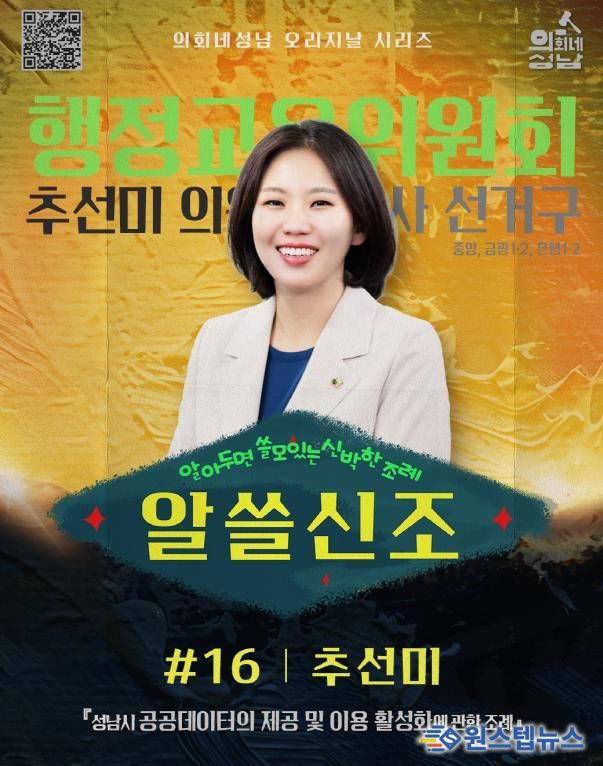 원스텝뉴스 이병희 기자 | 성남시의회는 ‘알쓸신조-추선미 의원 편’영상을 10월15일 17시 시의회 공식 SNS에 게시한다.