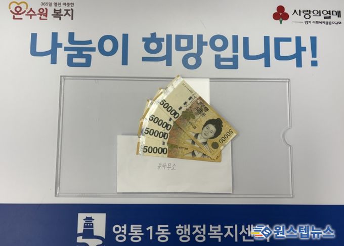 신한길 영통1동장은 “도움을 받던 분이 다시 나눔을 실천하는 모습에 큰 감동을 받았다”며 “지역사회 내 선한 영향력이 더욱 확산되어 모두가 함께하는 따뜻한 공동체가 만들어질 수 있도록 노력하겠다”고 말했다.