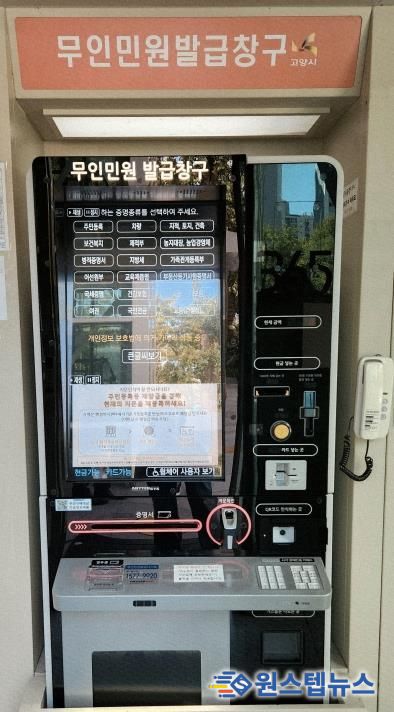 원스텝뉴스 이병희 기자 | 고양특례시 일산서구는 지난 15일, 노후로 인해 고장이 잦았던 주엽1동 행정복지센터의 무인민원발급기를 교체 설치했다고 밝혔다.