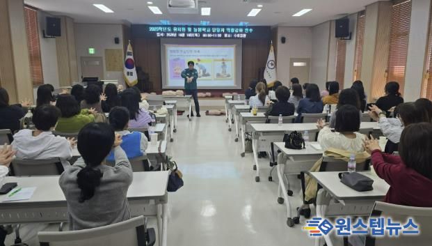 연수의 핵심 과정으로, 연천소방서 전문 강사를 초빙하여 120분간 응급처치 및 심폐소생술 교육이 진행됐다. 참석자들은 응급상황 발생 시 대처를 위한 이론 교육과 함께 심폐소생술 실습에 직접 참여하며 위기대응 능력을 강화하는 실질적인 시간을 가졌다. 이 외에도 늘봄학교 사업에 대한 안내와 홍보가 이루어졌다.