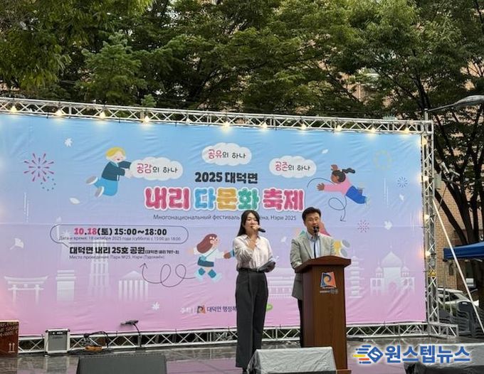 원스텝뉴스 천규영 기자 | 안성시 대덕면은 10월 18일 내리 25호 공원에서 ‘2025 대덕면 내리 다문화 축제’를 개최했다. 이날 축제에는 다문화 주민과 지역주민 500여 명이 참여해 공연과 체험, 나눔으로 하나 되는 뜻깊은 시간을 보냈다.