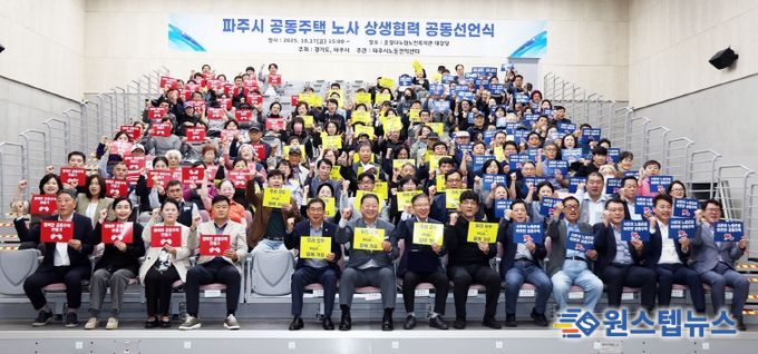 원스텝뉴스 이병희 기자 | 아파트 경비원, 미화원 등 공동주택 노동자들의 초단기 계약 관행을 근절하기 위해 경기도와 파주시, 지난 17일 파주시 운정 다누림 노인복지관에서 ‘공동주택 노동자 상생 협력 선언식’을 개최했다.