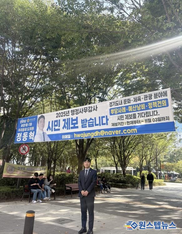 원스텝뉴스 이병희 기자 | 경기도의회 문화체육관광위원회 정동혁 의원(더불어민주당, 고양3)이 2025년도 행정사무감사를 앞두고 시민들의 제보를 받는다고 21일 밝혔다.