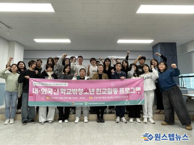 원스텝뉴스 이병희 기자 | 안성시학교밖청소년지원센터는 지난 10월 20일 안성공익활동지원센터 가치마당·가치누리에서 내·외국인 학교 밖 청소년이 함께 참여한 친교활동 프로그램을 성황리에 마무리했다.