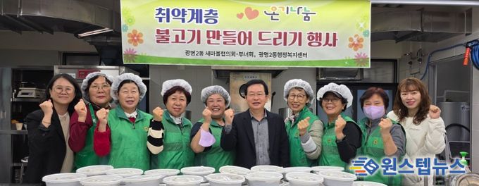 원스텝뉴스 이병희 기자 | 광명시 광명2동 새마을부녀회는 지난 20일 광명2동 행정복지센터에서 ‘온기 나눔 사랑의 불고기’ 행사를 열었다.