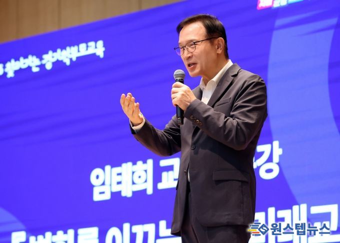 임 교육감은 특강에서 “지금의 대입제도로는 대한민국의 미래는 없다”면서 “경쟁 중심 줄 세우기 상대평가로는 창의성을 키울 수 없다”고 말했다.