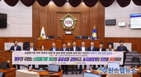 원스텝뉴스 이병희 기자 | 나주시의회는 21일 제273회 임시회 제2차 본회의를 열고 ‘산업폐기물 처리 공공성 강화 및 농촌 환경 보전을 위한 촉구 건의안’을 채택했다.