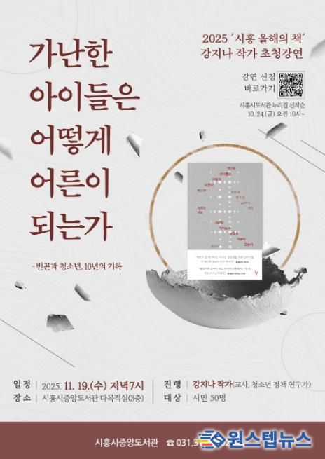 원스텝뉴스 이병희 기자 | 시흥시 중앙도서관은 ‘2025년 시흥 올해의 책’으로 선정된 '가난한 아이들은 어떻게 어른이 되는가'의 저자 강지나 작가를 초청해 11월 19일 오후 7시 중앙도서관 3층 다목적실에서 시민 강연회를 개최한다.