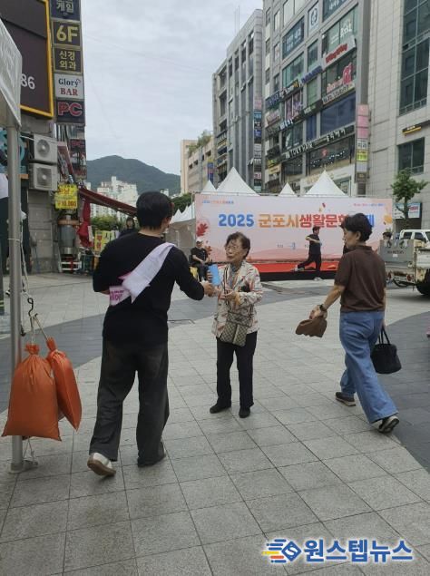 원스텝뉴스 이병희 기자 | 군포시는 10월 17일 산본로데오거리에서 열린 ‘2025 군포올래행복축제’ 현장에서 시민들을 대상으로 도로명주소 홍보활동을 진행했다.