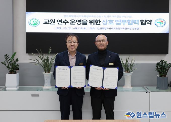 원스텝뉴스 이병희 기자 | 경기도교육청남부연수원이 23일 강원특별자치도교육청교육연수원과 교원 연수 협력을 위한 업무협약(MOU)을 체결했다.