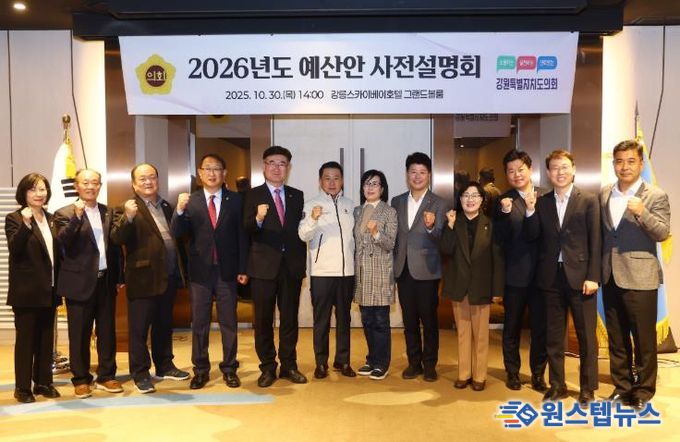 원스텝뉴스 이병희 기자 | 강원특별자치도의회 예산결산특별위원회는 10월 30일 오후 2시 강릉시 스카이베이호텔 경포 그랜드볼룸에서 강원특별자치도 및 강원특별자치도 교육청 예산관계관 등이 참석한 가운데 “2026년 예산안 사전설명회”를 개최했다.