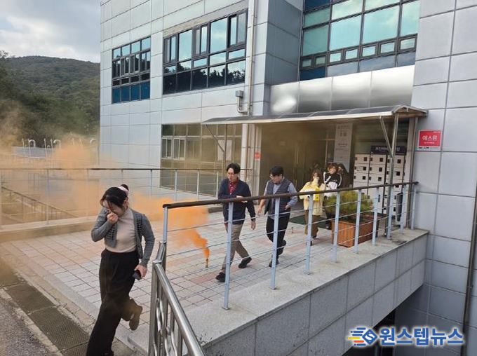 원스텝뉴스 이병희 기자 | 의정부시 맑은물사업소는 10월 29일 직원 및 민원인 등 70여 명이 참여한 가운데 소방훈련을 실시했다.