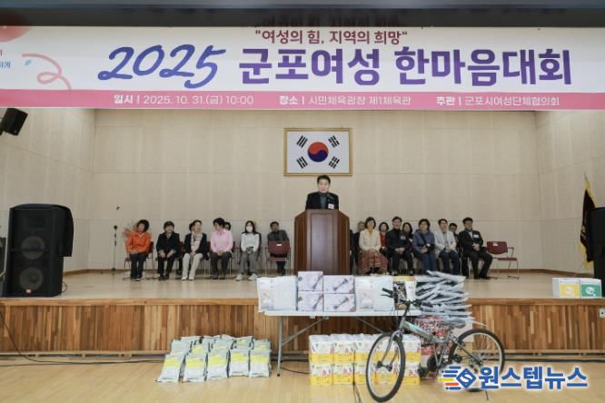 원스텝뉴스 천규영 기자 | 군포시는 31일 시민체육광장 제1체육관에서 14개 여성단체 650여 명이 참석한 가운데 2025년 군포여성 한마음대회를 개최했다.