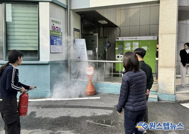 15시경 화재 발생을 가정해 △화재경보 발령, △대피 유도, △초기 진화 순으로 진행됐으며, 소화기 사용법 등 실습 중심의 교육도 병행했다.