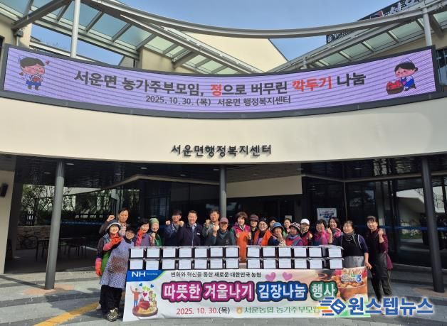 이날 행사는 서운면 행정복지센터에서 진행됐으며, 농가주부 모임 회원 25명이 아침 일찍부터 정성껏 준비한 재료로 깍두기 직접 담가 독거노인, 저소득층 등 취약계층 30여 가구에 전달했다.
