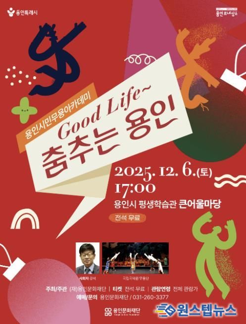 원스텝뉴스 천규영 기자 | 용인문화재단은 오는 12월 6일 오후 5시, 용인시평생학습관 큰어울마당에서 ‘용인시민무용아카데미’ 'Good Life~ 춤추는 용인' 공연을 개최한다.