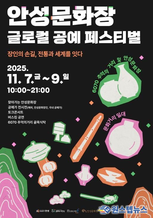 원스텝뉴스 천규영 기자 | 안성시는 오는 11월 7일부터 9일까지 3일간, 장기로74번길 일대 ‘6070 추억의 거리’에서 ‘장인의 손길, 전통과 세계를 잇다’를 주제로 '2025년 안성문화장 글로컬 공예 페스티벌'을 개최한다.