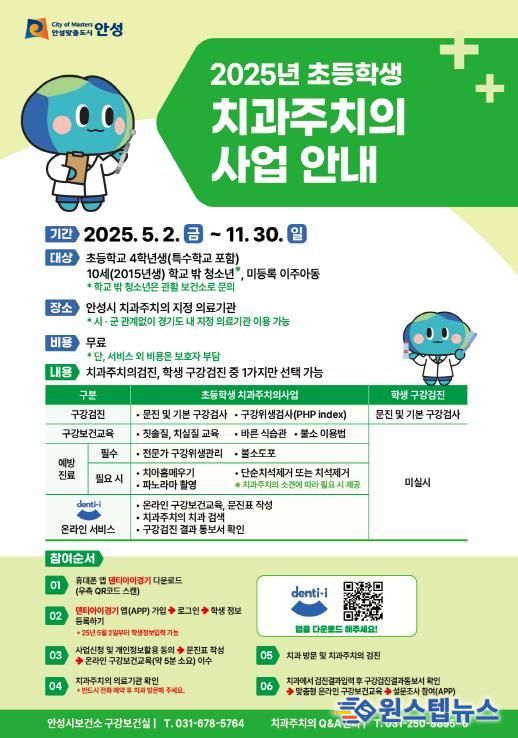 안성시보건소 관계자는 “아직 검진을 받지 않은 학생이 빠른 시일내에 지정된 치과에 방문하여 치과주치의 사업에 참여해 주길 당부드리며, 검진을 받기 위해서는 학교, 가정, 보건소, 치과 의료기관 등 지역사회가 하나가 되어 힘을 모아야 한다.”라고 강조했다.