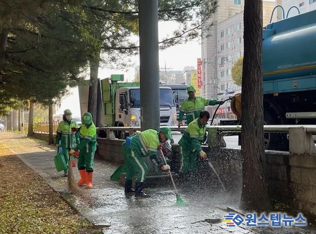 원스텝뉴스 이병희 기자 | 수원시 장안구는 지난 5일, 시민불편을 유발하는 은행나무 열매 다량 발생지를 대상으로 물세척 청소를 실시했다.