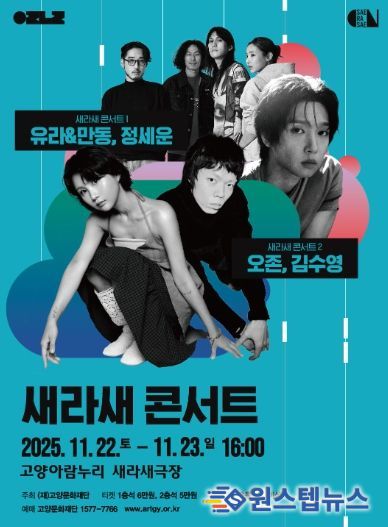원스텝뉴스 천규영 기자 | (재)고양문화재단은 소극장 기획공연 시리즈 ‘2025 새라새 ON 시리즈’의 11월 프로그램으로, 감각적인 싱어송라이터들을 만날 수 있는 '새라새 콘서트 1~2'를 11월 22일과 23일 양일간 고양아람누리 새라새극장에서 개최한다.