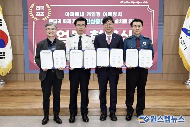 원스텝뉴스 이병희 기자 | 안산시는 지난 10일 안산시청 제1회의실에서 안산소방서 등 4개 기관과 아파트단지 내 개인형 이동장치(PM : Personal Mobility) 배터리 ‘안심 충전소’ 설치를 위한 업무협약(MOU)을 체결했다고 11일 밝혔다.