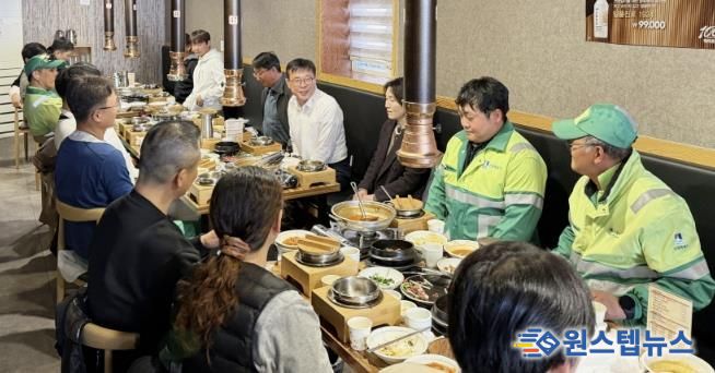 이번 간담회는 가을철 낙엽 수거 및 청소 업무로 노고가 많은 환경관리원들을 격려하고 현장 애로사항을 청취하기 위해 마련됐다.