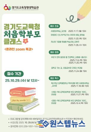 원스텝뉴스 이병희 기자 | 경기도교육청평생학습관이 자녀의 새로운 학교생활을 앞둔 예비 학부모를 대상으로 ‘처음학부모 클래스’를 운영한다.