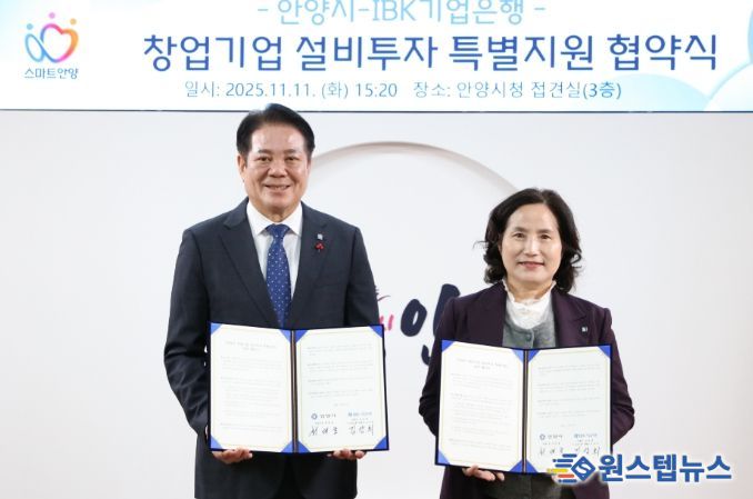 원스텝뉴스 이병희 기자 | 안양시와 IBK기업은행은 관내 창업기업의 설비투자 지원을 위해 ‘창업기업 설비투자 특별지원’ 업무협약을 체결했다고 11일 밝혔다.