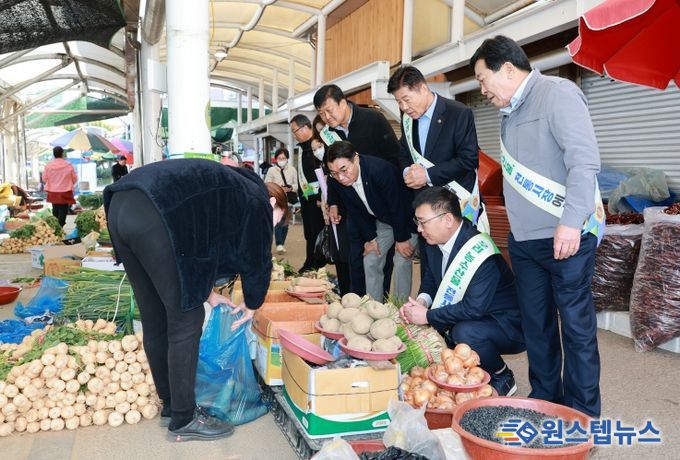 이날 캠페인에는 김문수 위원장을 비롯한 농수산위원회 위원들과 의회사무처 직원들이 참여해 전통시장 상인들과 소통하며 지역 농수산물과 특산품을 구입했다.
