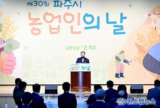 김경일 파주시장은 “고물가, 이상기후, 농촌 고령화 등 어려운 여건 속에서도 안전한 먹거리를 위해 파주시 농업을 지켜온 농업인 여러분께 깊은 감사와 존경의 마음을 전한다”라며 “앞으로도 농업인의 안정적 소득과 지속 가능한 농업 발전을 위해 다양한 지원 정책 마련에 최선을 다하겠다”라고 말했다.