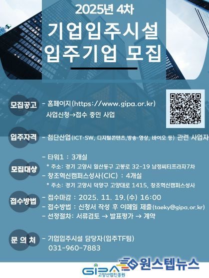 원스텝뉴스 이병희 기자 | 고양산업진흥원이 오는 19일까지 기업입주시설 신규 입주기업을 모집한다.