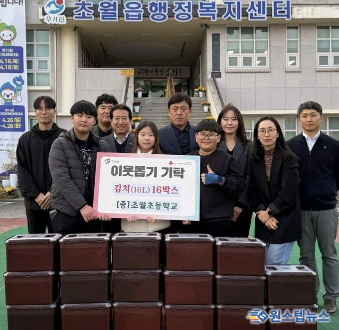 원스텝뉴스 이병희 기자 | 광주시 초월읍 신월리에 위치한 초월초등학교 학생들은 지난 11일 직접 담근 김장김치(16L) 16박스를 경기 사회복지공동모금회를 통해 초월읍 행정복지센터에 기탁했다.