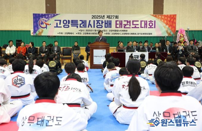 원스텝뉴스 이병희 기자 | 2025년 제27회 고양특례시장기 태권도대회가 16일 고양어울림누리 체육관에서 개최됐다. 이동환 고양특례시장은 “갈고닦은 실력과 기량을 유감없이 발휘해 후회 없는 경기를 펼쳐주길”이라고 말했다.