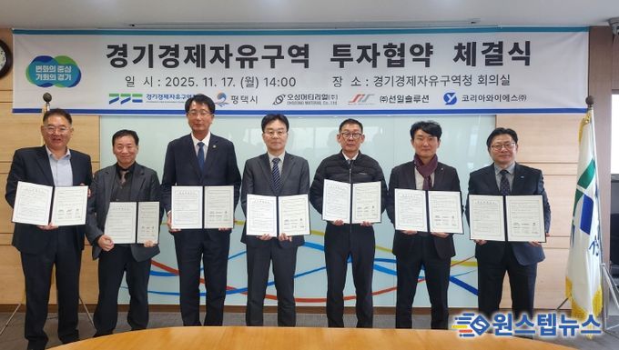 원스텝뉴스 이병희 기자 | 경기경제자유구역청은 17일 경기경제청에서 평택시, 자동차부품 제조기업 3개 사와 평택 포승(BIX)지구 산업시설용지 투자협약을 체결했다.