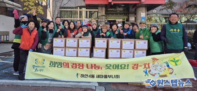 원스텝뉴스 이병희 기자 | 광명시 하안4동 새마을부녀회는 지난 17일부터 18일까지 이틀간 하안4동 행정복지센터 주차장에서 ‘온정의 김장김치 담그기’ 행사를 진행했다.
