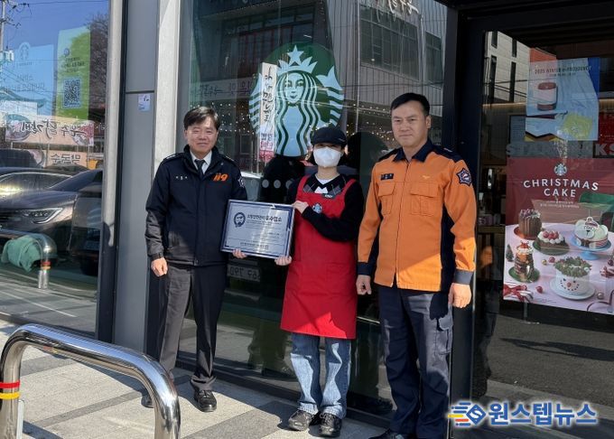 원스텝뉴스 이병희 기자 | 가평소방서는 19일 오후 1시 가평읍 소재 스타벅스 남이섬점을 방문하여 ‘다중이용업소 안전관리 우수업소’로 선정하고 인증표지를 전달했다.