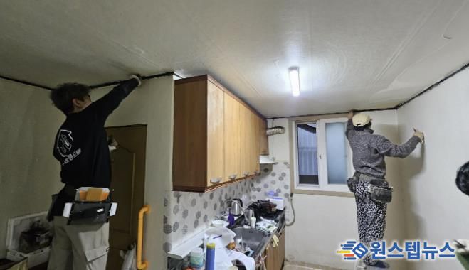 원스텝뉴스 이병희 기자 | 시흥시는 지난 11월 18일 시흥시북부중장년센터가 양성한 ‘도배기능사’ 과정 수료생(7명)과 관계자 등 총 10명이 대야동 취약계층 2가구를 대상으로 도배 봉사활동을 진행했다.