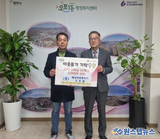 이에 대해 남기태 동장은 “어려운 이웃을 위해 따뜻한 마음을 전해주신 한용호 대표님께 깊이 감사드린다”며 “기탁해 주신 귀한 김치는 도움이 꼭 필요한 가정에 신속하고 소중히 전달하겠다”고 전했다.