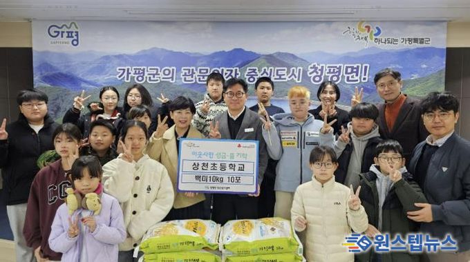 원스텝뉴스 이병희 기자 | 가평군 청평면 상천초등학교 교직원과 학생들이 최근 청평면 행정복지센터를 찾아 지역의 어려운 이웃을 위해 백미 10포(10kg 들이)를 기탁했다.