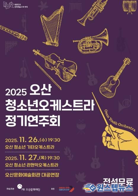 오산문화재단 관계자는 “이번 정기연주회는 단원들이 1년간 쌓아온 실력을 선보이는 뜻깊은 무대”라며 “학부모와 시민들이 함께 문화예술을 향유하고 청소년들의 성장을 응원하는 자리가 되길 바란다”고 밝혔다.
