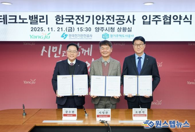 원스텝뉴스 이병희 기자 | 경기주택도시공사(GH)는 21일 양주시청 상황실에서 양주시, 한국전기안전공사와 함께 ‘한국전기안전공사 북부지역본부’의 경기양주 테크노밸리 입주를 위한 협약식을 체결했다고 밝혔다.