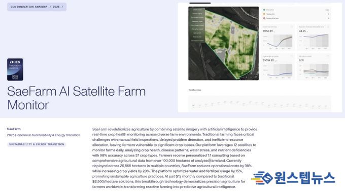 이 기술은 내년 1월 열리는 CES 2026에서 ‘SaeFarm AI Satellite Farm Monitor(새팜 농림위성 인공지능 분석)’ 서비스로 출품돼 공개될 예정이다.