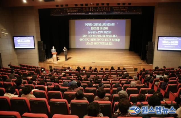 원스텝뉴스 천규영 기자 | 군포시늘푸른노인복지관은 지난 11월 21일 금요일, 군포문화예술회관 철쭉홀에서 제11회 후원자 및 자원봉사자 감사송년행사‘빛나는 송년회’(부제: 반짝반짝 빛났던 11년 앞으로도 함께해요)를 진행했다.