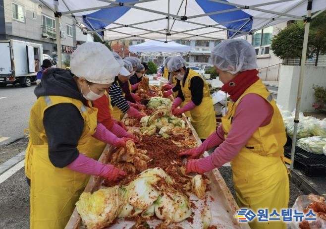 원스텝뉴스 이병희 기자 | 수원 징검다리봉사단은 지난 23일 수원시 장안구 정자2동 행정복지센터 주차장에서 사랑의 김장 담그기 행사를 진행했다.