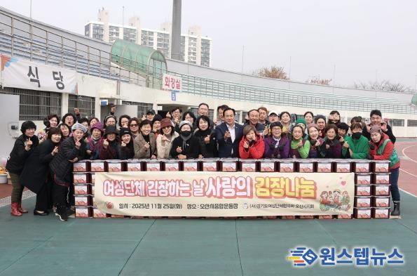 원스텝뉴스 이병희 기자 | 사)경기도여성단체협의회 오산시지회는 지난 24일과 25일 이틀간 오산종합운동장에서 ‘김장나눔 행사’를 개최하고, 연말을 맞아 지역 내 어려운 이웃들에게 따뜻한 마음을 전했다.