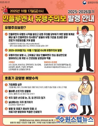 인플루엔자 환자 수가 급증함에 따라 지난 10월 17일‘인플루엔자 유행주의보’가 발령됐다. 현재까지의 유행 양상을 고려했을 때, 올해 인플루엔자 유행 기간이 길고, 지난해와 유사한 정도로 크게 유행할 가능성이 있다고 전망되고 있다.
