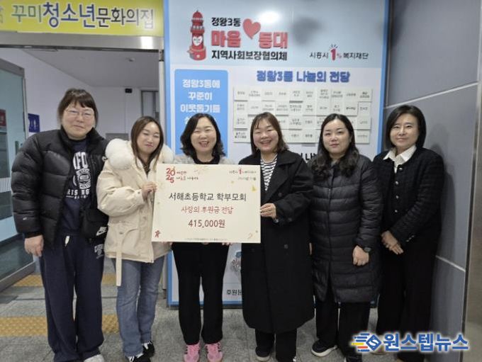 이번 기부는 지난 11월 1일 정왕3동 마을축제추진위원회 주관으로 열린 ‘놀통 페스티벌’에서 서해초등학교 학부모회가 ‘나누고 순환하는 즐거움’이라는 주제로 아나바다 장터 부스를 운영하며 조성한 수익금으로 마련됐다. 기탁된 수익금은 정왕3동 지역사회보장협의체를 통해 관내 취약계층 지원사업에 사용될 예정이다.