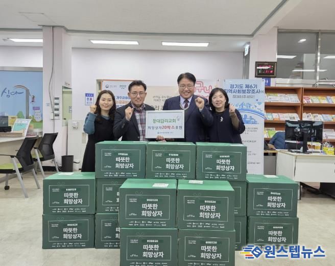 원스텝뉴스 이병희 기자 | 시흥시 군자동에 있는 등대감리교회가 국제구호 NGO ‘희망친구 기아대책’과 함께 지난 11월 25일 군자동 행정복지센터에 20개의 희망 상자(200만 원 상당)를 기부했다.